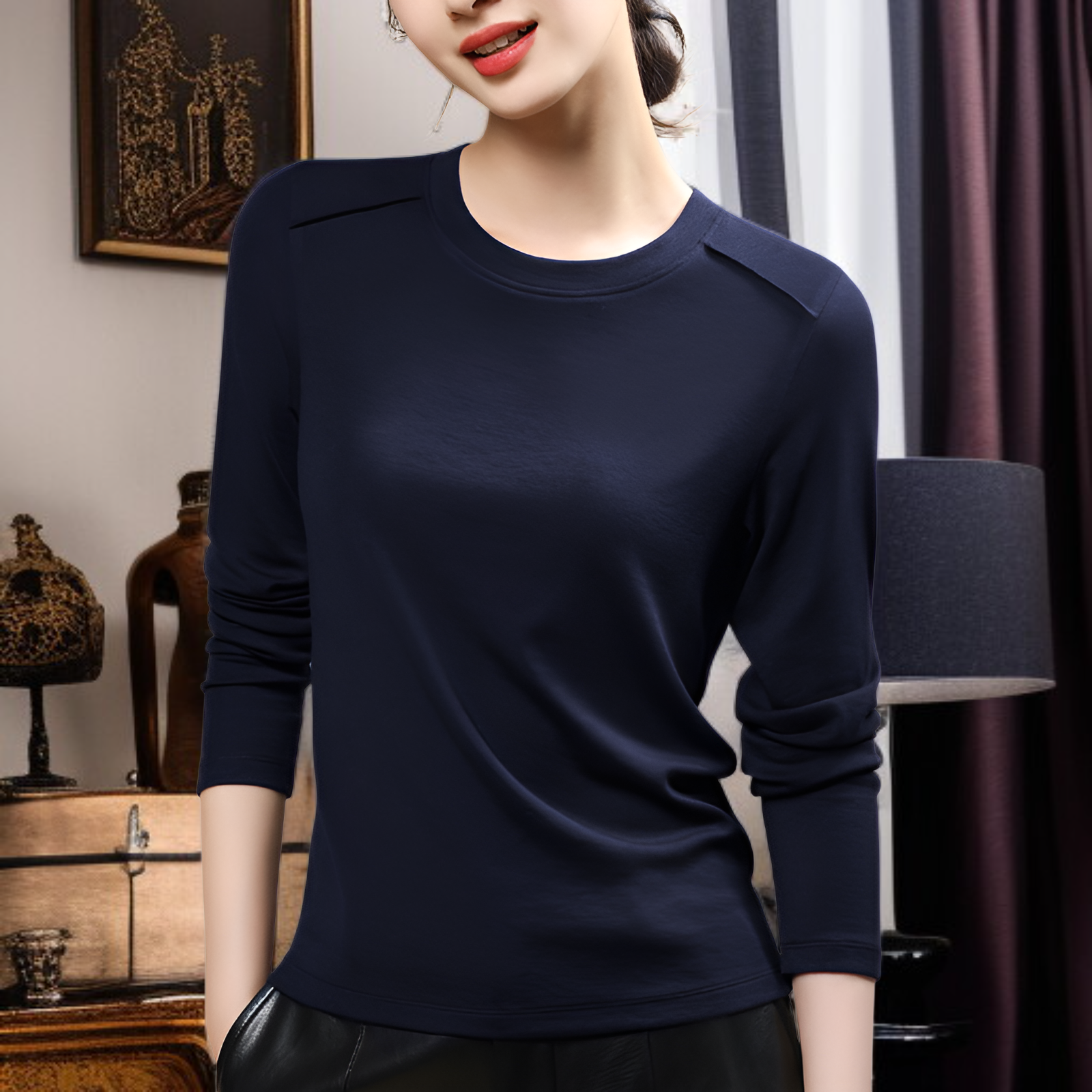 ラウンドネックデザインの秋冬用長袖Tシャツ